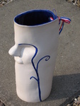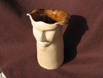 2007Een vaas met gezicht bruingeglazuurd van binnen.