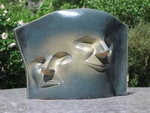 2008Twee gezichten op een vaas,geglazuurd in groen.